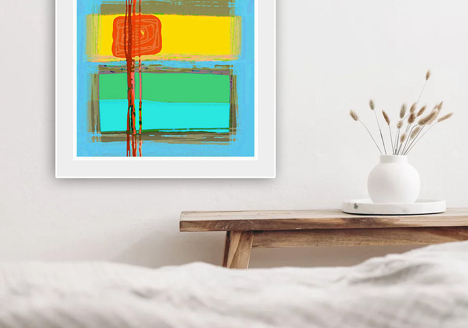 A beautiful semi-abstract art design inspired from the bright colours of Santorini island